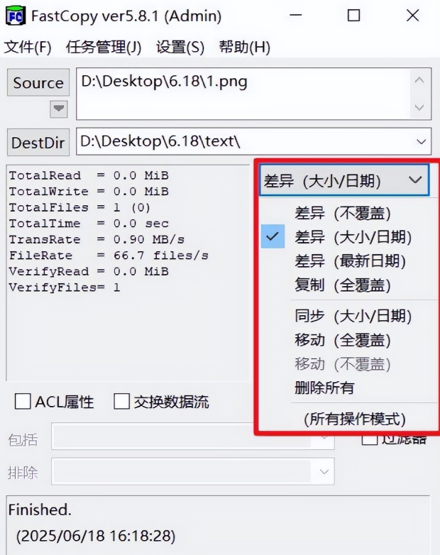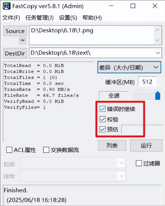 它还有一个特别贴心的设计,就是处理同名文件的方式。系统自带的复制一旦遇到重名文件就会停下来弹窗让你选择,你得守在电脑前手动操作。而FastCopy可以设置直接跳过错误继续传输,你设好任务点个“运行”就可以走开忙别的,不用再死盯着进度条了,这对于需要批量处理大量文件的用户来说,简直是解放双手的神器。